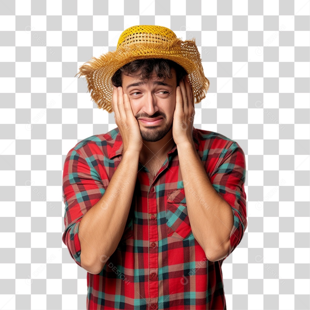 Homem com Roupa de São João Preocupado
